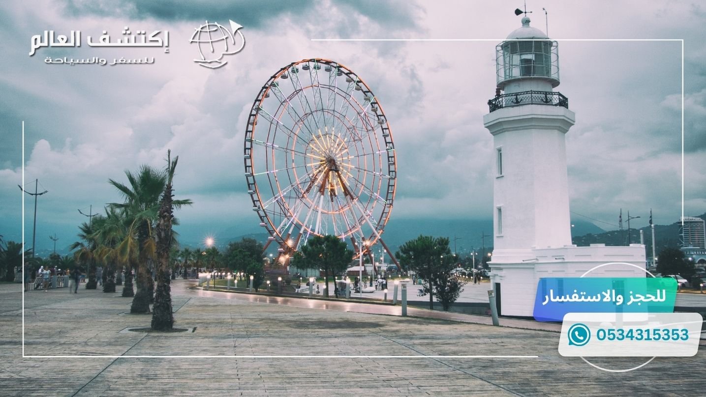 رحلات بحريه - برج الحروف الأبجدية - تمثال علي ونينو - حديقه البوليفارد - حديقه ٢٦ مايو - المطعم المقلوب - الحدود التركيه - قلعه جونيو - ميدان بياتسا - باتومي القديمه - المسجد الوسطي - رحلات بحريه - آكلات بحريه